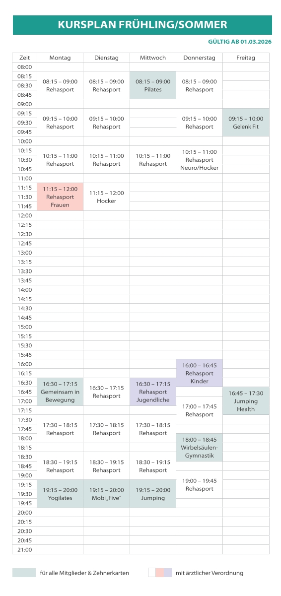Verbessern Sie Ihre Kraft, Ausdauer, Kondition, Gleichgewicht und Beweglichkeit mit unseren Kursen in den Bereichen Prävention, Reha und Sport.